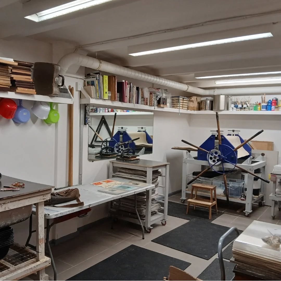 St. Pauli Paper verfügt ber zwei Tiefdruckpressen, zwölf 40x50-Siebdruckrahmen und zwei Dutzend Gelli-Platten.